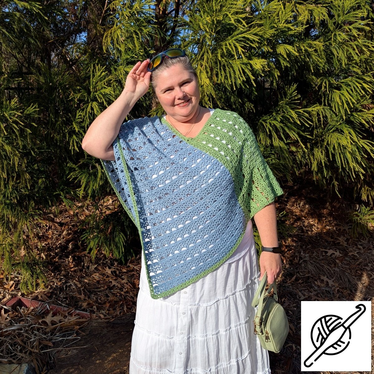 The Heidelberg Poncho is a great layering piece for your wardrobe. The poncho is constructed from two rectangular panels that are joined together. Each panel is crocheted separately and then seamed together to form the poncho shape. The lacy stitch pattern design features openwork stitches and breezy cotton/viscose yarn making this accessory perfect for the spring and summer seasons.