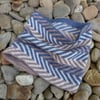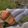 The pattern uses a geometrical arrow-like stitch pattern and 3 different colors.