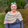 A pattern for an asymmetrical drawstring capelet that is made with two contrasting yarns. The capelet worked top down, starting with drawstring casing, continuing with an increasing section for the main color, then short row sections and a stripe with contrast color. Repeat 4 or 5 times those levels and the lower edge is finished with a lined hem. Photo tutorial for the lined hem included in the pattern.