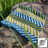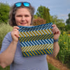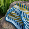 Yarn: 3 contrast colors of fingering weight yarn, each color 155 yds (140 m), sample made with Yarn Bee Pigment+Fiber 60% Acrylic, 20% Wool, 20% Nylon, 105 yds (96 m)/0.88 oz (25 g). Sample made with 3 colors (blue, light blue, and olive) from the set City Girl.